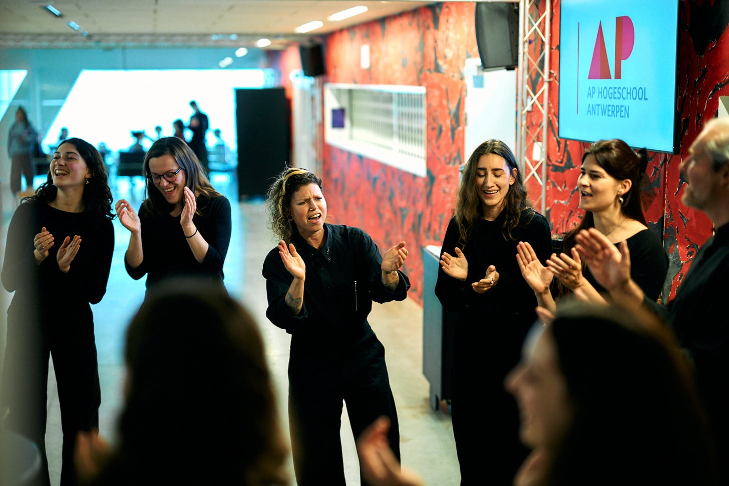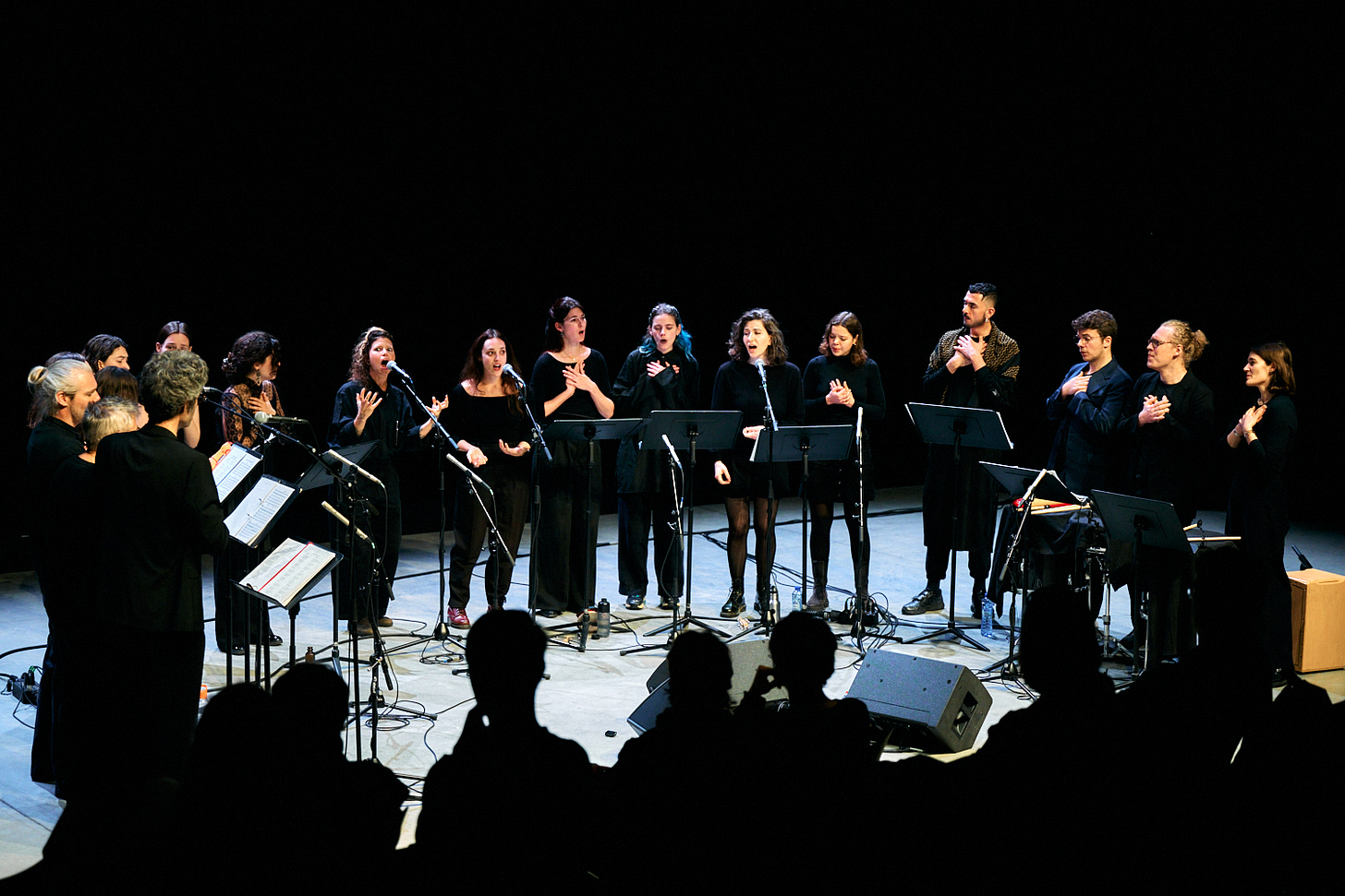 Now, and please bear with me here, if we think of our body as a resonating space which we empty out to make room for something other than ourselves—perhaps new perception, a new understanding, other beings or entities, the collective...—then in a sense, we (the choir) are now emptying ourselves as a group, and making space for YOU: the listening bodies present in the space with us, to fill it up with the new sense that YOU can make of what we are doing.
